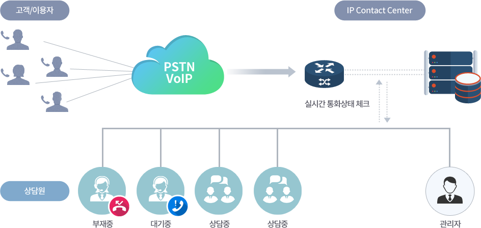 VoIP, Gateway, IP PBX, CRM, 녹취 및 IVR과 CTI 환경을 결합한 통합 솔루션